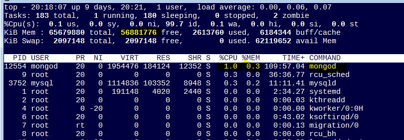What I see strange is when I do top, mongod is taking less than 1% CPU & RAM - please see attached report from top… very confusing…